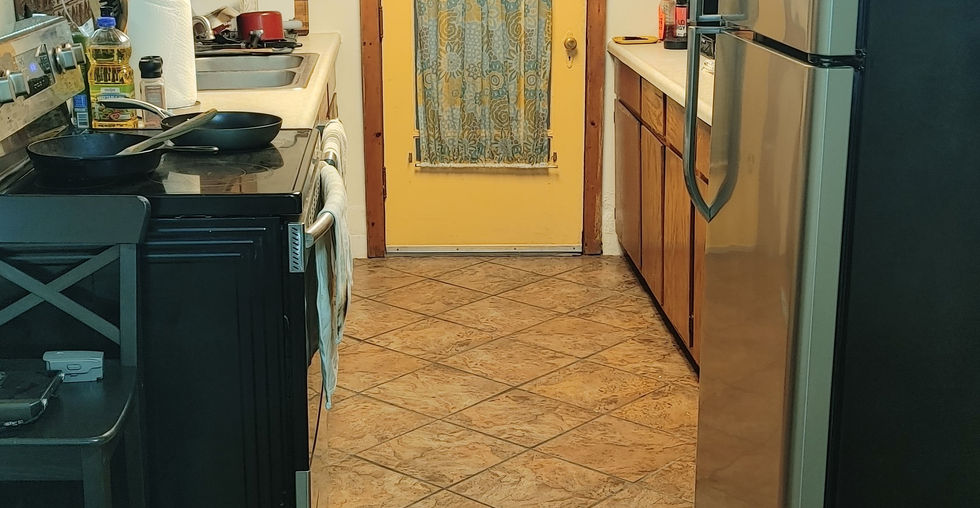 Ceramic tile and oak hardwood floors